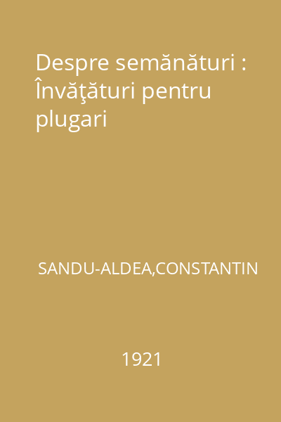 Despre semănături : Învăţături pentru plugari