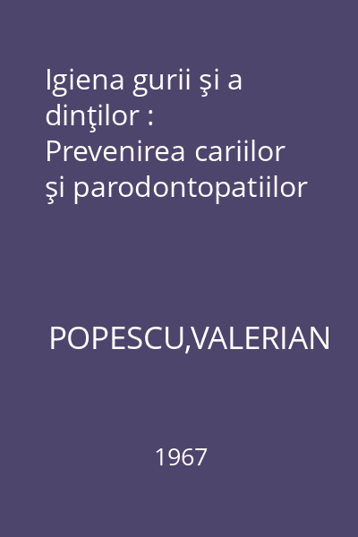 Igiena gurii şi a dinţilor : Prevenirea cariilor şi parodontopatiilor