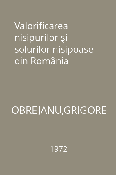 Valorificarea nisipurilor şi solurilor nisipoase din România