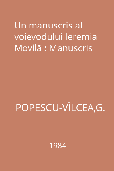 | Subiect | manuscrise / cărți rare |