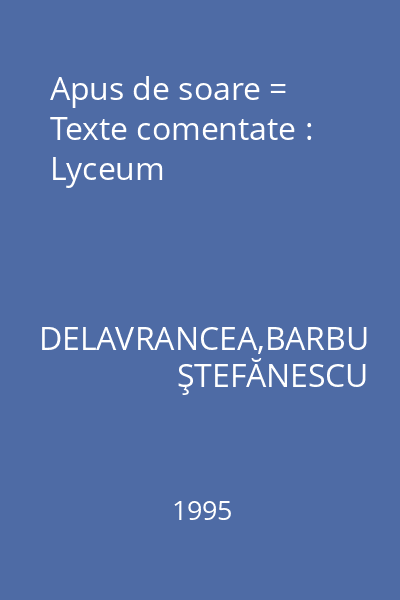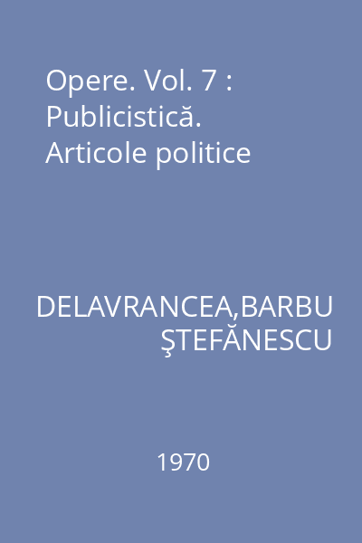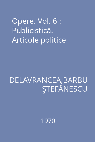 DELAVRANCEA,BARBU ŞTEFĂNESCU