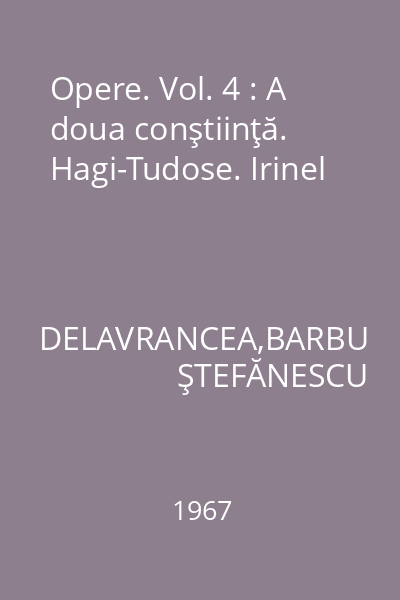 Opere. Vol. 4 : A doua conştiinţă. Hagi-Tudose. Irinel